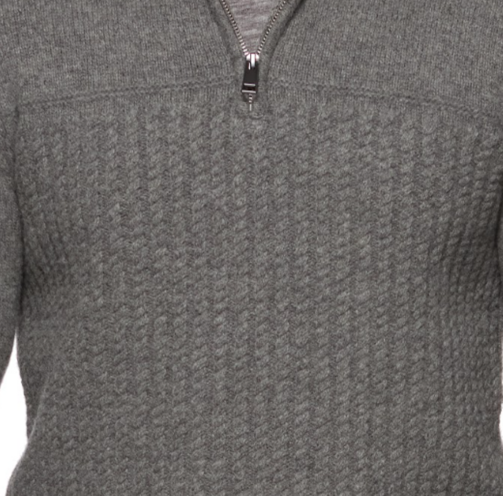 Great looking long sleeve 1/4 Zip cable mock neck sweater, the Woodland, in Charcoal Heather. Nice weight and attractive.