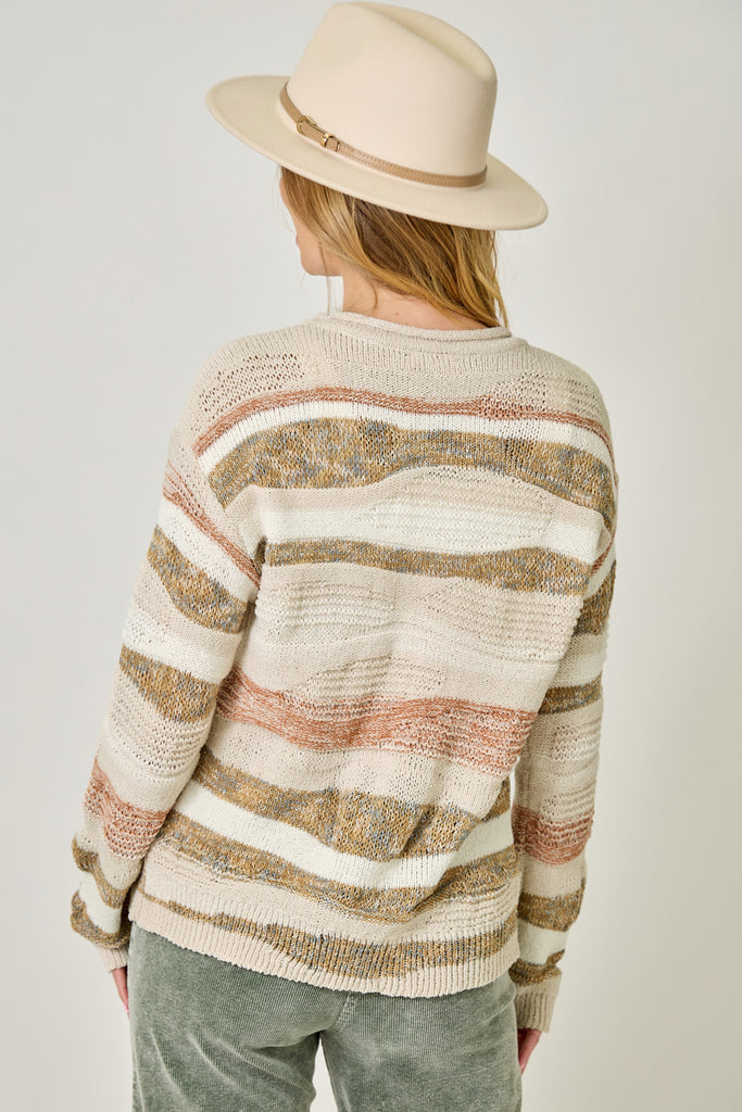 Check out this Wavy Sand design in an Almond Mix with a rolled round neck. Looser fit, so very comfortable and easy to wear.