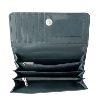 Woven wallet in Teal Bloom. Snap closure. Cell phone pocket.